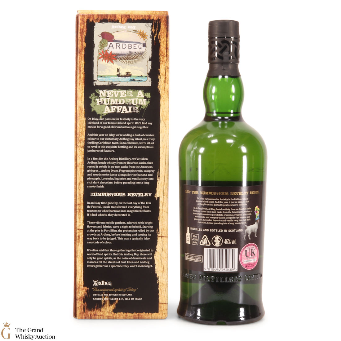 This is the 2019 Ardbeg Drum Limited edition. The Ardbeg Drum is a non-age-statement single malt matured in ex-Bourbon casks and then finished in ex-rum casks from the Americas. It was created to celebrate Ardbeg Day 2019 (June 1) held during the Islay Festival of Music & Malt (Fèis Ìle).