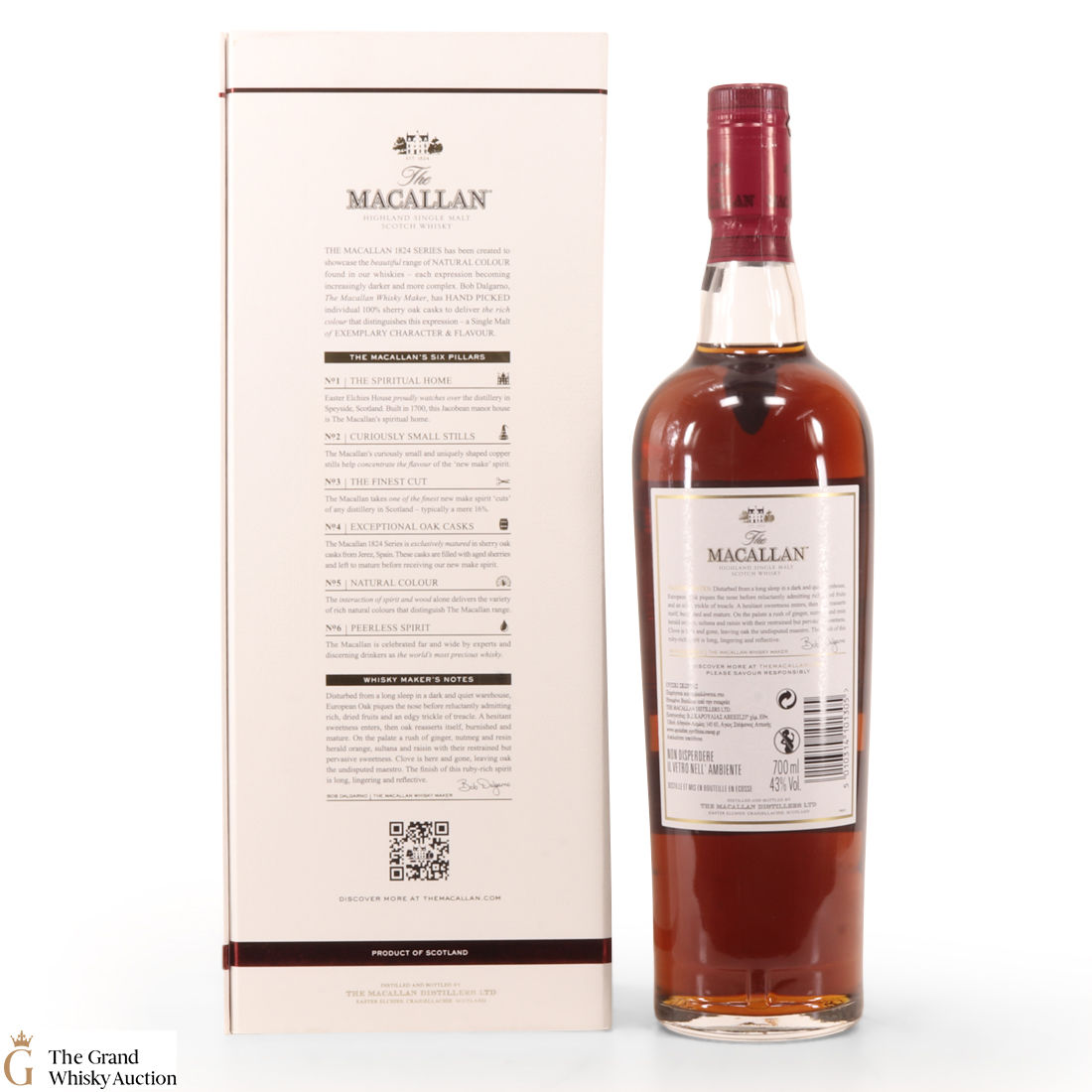 The Macallan 1824 Series celebrates natural colour. The most distinctive and defining characteristic of Macallan is the sherry-seasoned oak casks that are used to mature the whisky. This series shows commitment to 100% natural colour, drawn from wood. The colour of each expression becomes deeper as the range progresses.