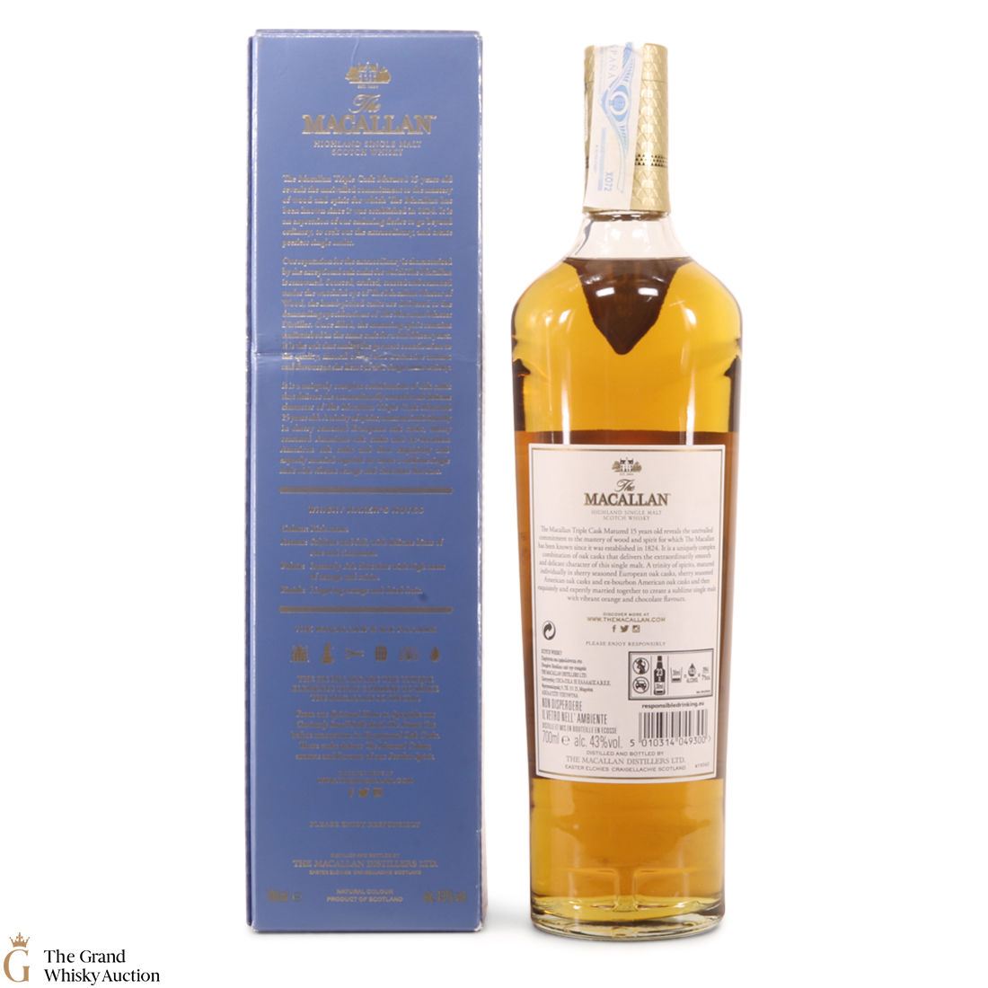 This 15 year old Macallan single malt was released in 2018 as part of the Triple Cask range (which was brought out to replace the Fine Oak range in 2018). This whisky has been matured for 15 years in a combination of European sherry seasoned casks, American sherry seasoned casks and American ex-bourbon casks.