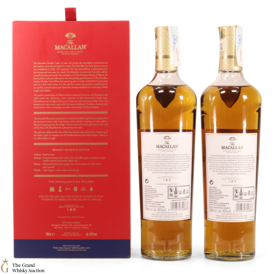 With bespoke label designs, this is an eye-catching limited-edition release twin pack containing 2 x 70cl bottles of The Macallan 12-year-old Double Cask single malt whisky.