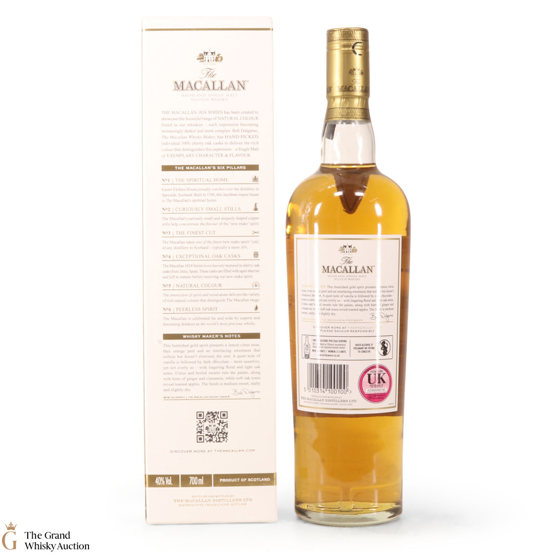 The Macallan 1824 Series celebrates natural colour. The most distinctive and defining characteristic of Macallan is the sherry-seasoned oak casks that are used to mature the whisky. This series shows commitment to 100% natural colour, drawn from wood. The colour of each expression becomes deeper as the range progresses.