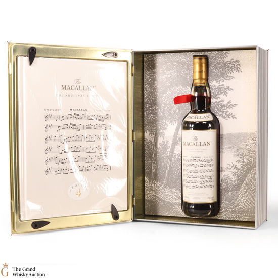The fourth edition in the Archival Series from The Macallan. Folio 4 remembers the legendary advertising campaigns of the 1970s, 1980s and 1990s that brought The Macallan to the public’s attention outside of Scotland. It is presented in a beautiful book shaped, tin case. It features an advertisement including a Strathspey composed by James Scott Skinner (1843-1927). The advert notes that Skinner was so moved by his favourite malt he created a unique piece of music featuring his signature lilting notes with the simple catchphrase: “The Macallan. The Malt.”