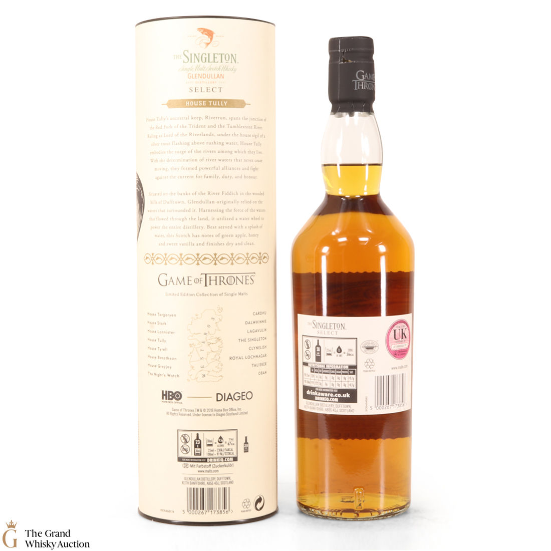 The Singleton Glendullan Reserve hails from Dufftown distillery. Glendullan is located on the banks of the River Fiddich, so it has been cleverly paired with House Tully at Riverrun, which is in the region known as The Riverlands. This single malt Scotch whisky is decorated with a jumping trout - the sigil of House Tully.