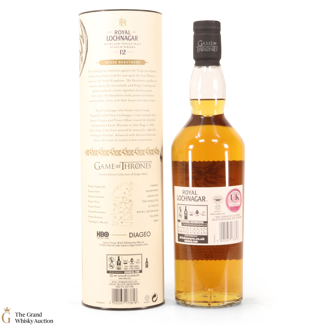 This is a limited-edition 12 year old single malt from Royal Lochnagar and it is part of Diagio's 2018 collaboration with HBO. Each single malt in the series relates to the land of houses of the Game of Thrones television series. The Royal Lochnagar bottle is decorated with a rampant black Stag, the sigil of House Baratheon that once flew on banners above the Stormlands and King’s Landing signifying absolute power.