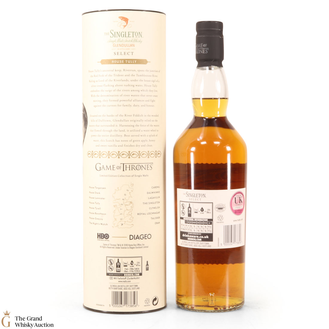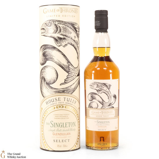 The Singleton Glendullan Reserve hails from Dufftown distillery. Glendullan is located on the banks of the River Fiddich, so it has been cleverly paired with House Tully at Riverrun, which is in the region known as The Riverlands. This single malt Scotch whisky is decorated with a jumping trout - the sigil of House Tully.