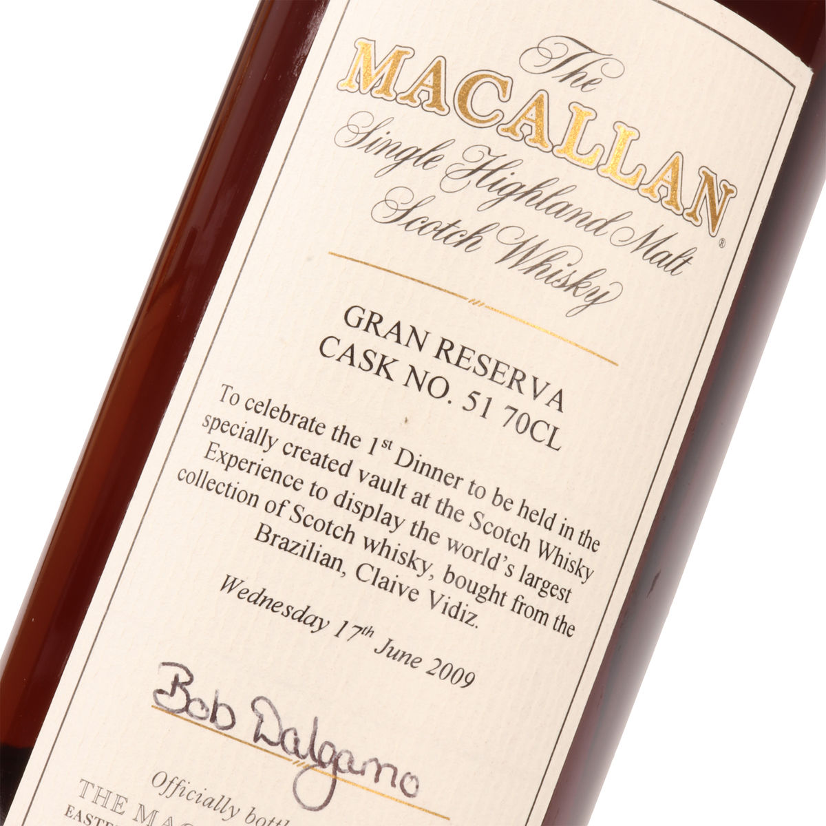 Signed by Bob Dalgarno, this hand bottling came from Cask No 51.