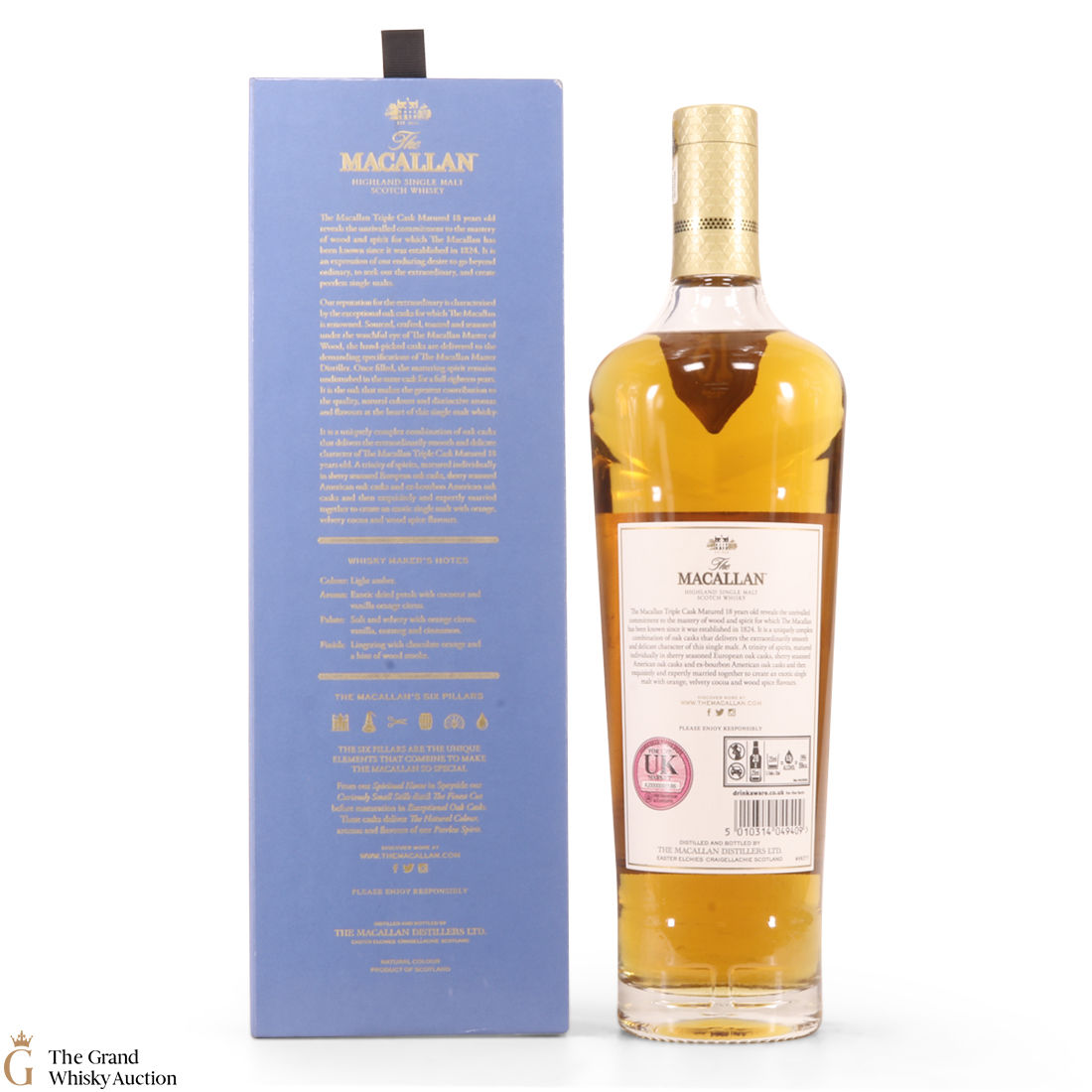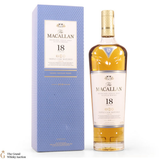 This 18 year old Macallan single malt was released in 2018 and sits is at the top of the Triple Cask range (which replaced the Fine Oak range). The whisky was matured in a combination of European sherry seasoned casks, American sherry seasoned casks and American ex-bourbon casks. This expression boasts bountiful notes of vanilla, dried fruit and woody spice.