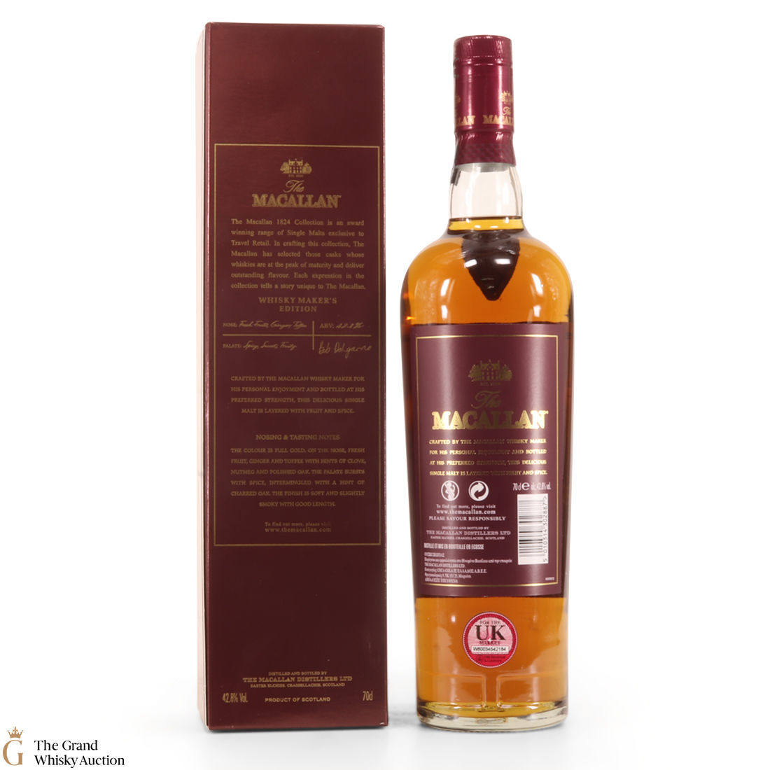 Released for the travel retail market, this single malt is part of The Macallan Whisky Maker's Edition Classic Travel Range. It was crafted by Bob Dalgarno, Macallan's distillery manager, using whisky drawn from a combination of Sherry and bourbon casks. It is bottled at his preferred strength of 42.8%.