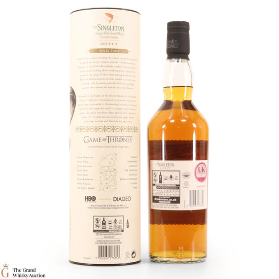 The Singleton Glendullan Reserve hails from Dufftown distillery. Glendullan is located on the banks of the River Fiddich, so it has been cleverly paired with House Tully at Riverrun, which is in the region known as The Riverlands. This single malt Scotch whisky is decorated with a jumping trout - the sigil of House Tully.