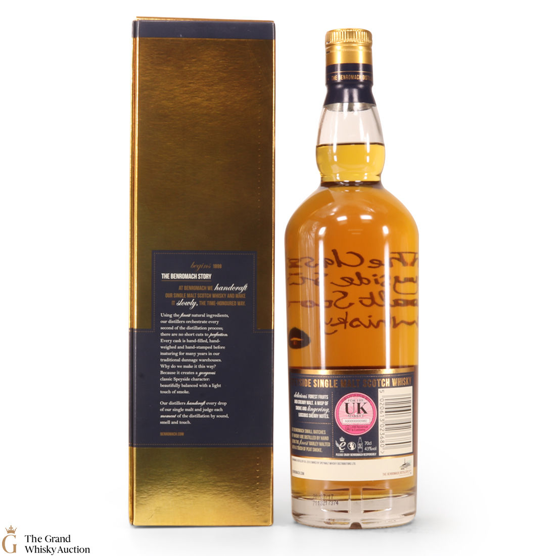 This is a 10 year old single malt from Benromach Distillery in Speyside. It was handcrafted by just 2 men, at what was Speyside's smallest distillery.