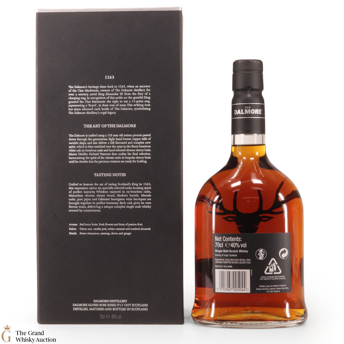 To make The Dalmore King Alexander III, Master Distiller Richard Paterson specially selected 6 casks of differently aged Dalmore malts matured in wine, Madeira, sherry, marsala, Kentucky bourbon and port casks. A remarkable feat of blending crafted to honour the act of saving Scotland's King in 1263. It is a rich, fruity Highland single malt.