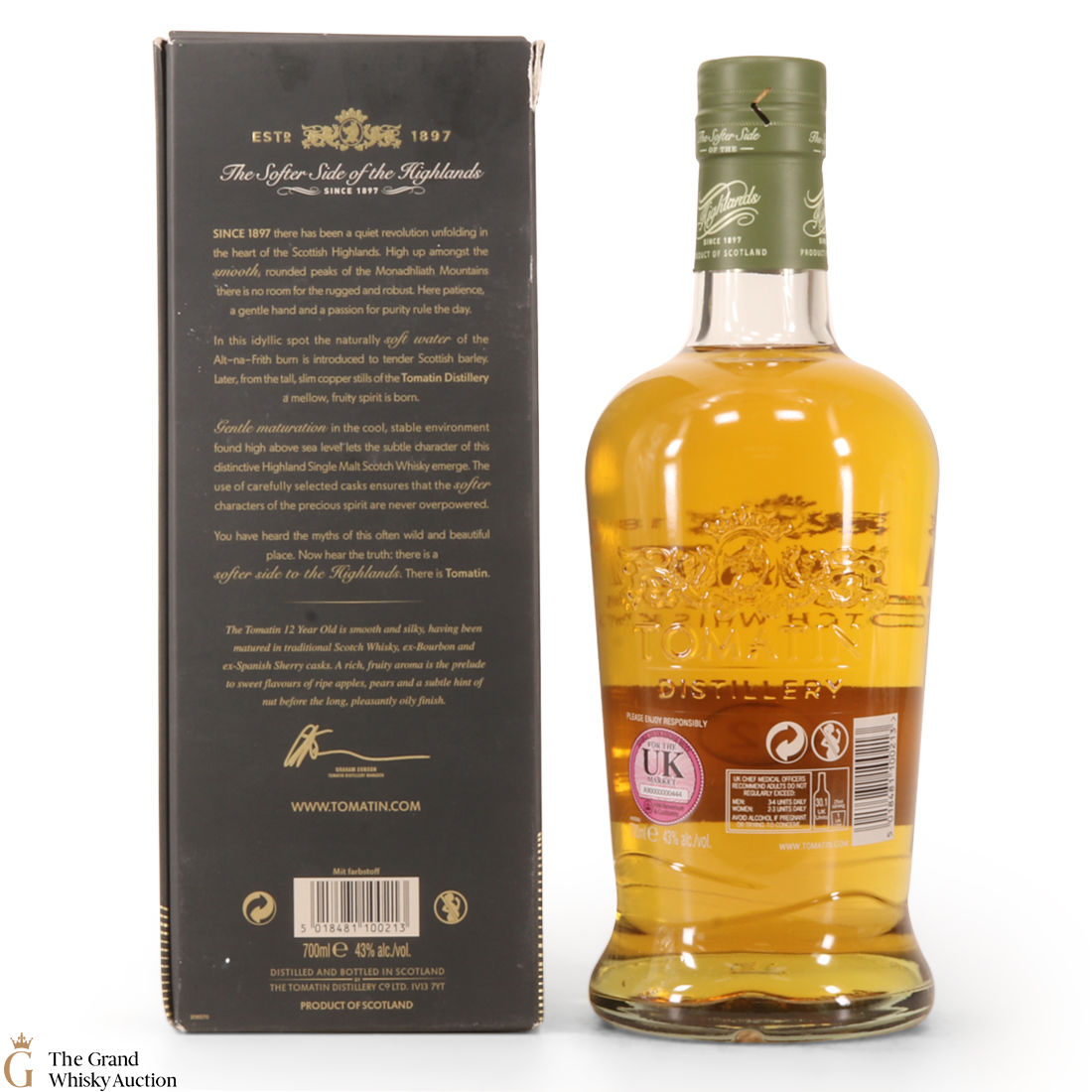 This Tomatin 12 Year Old was released prior to 2014 as it was bottled at 40% (after 2014, it was bottled at 43%) It was matured in a bourbon cask and finished in Spanish sherry casks. The result is a sweet whisky with notes of apples, citrus and sweet spice.