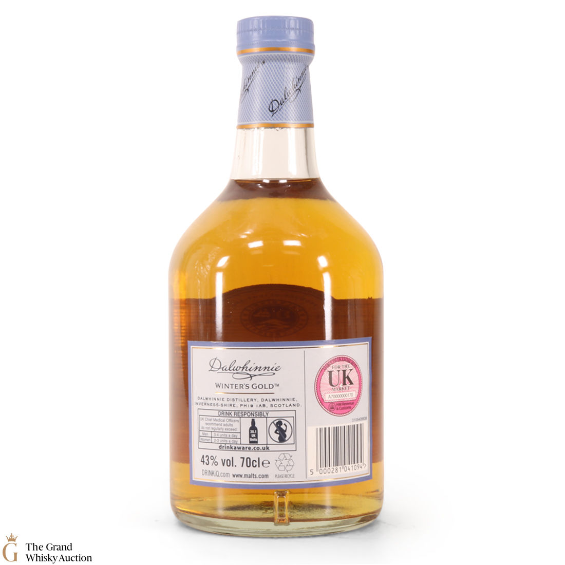 Due to the various ages of bottles and their seals, the condition of liquid is at the buyer's discretion and no claim can be lodged against failure/leakage in transit. Loss and breakage cover is available at 3% of the hammer price as standard. If the lot is not insured, no claim can be lodged against the courier or The Grand Whisky Auction for breakage or loss in transit.