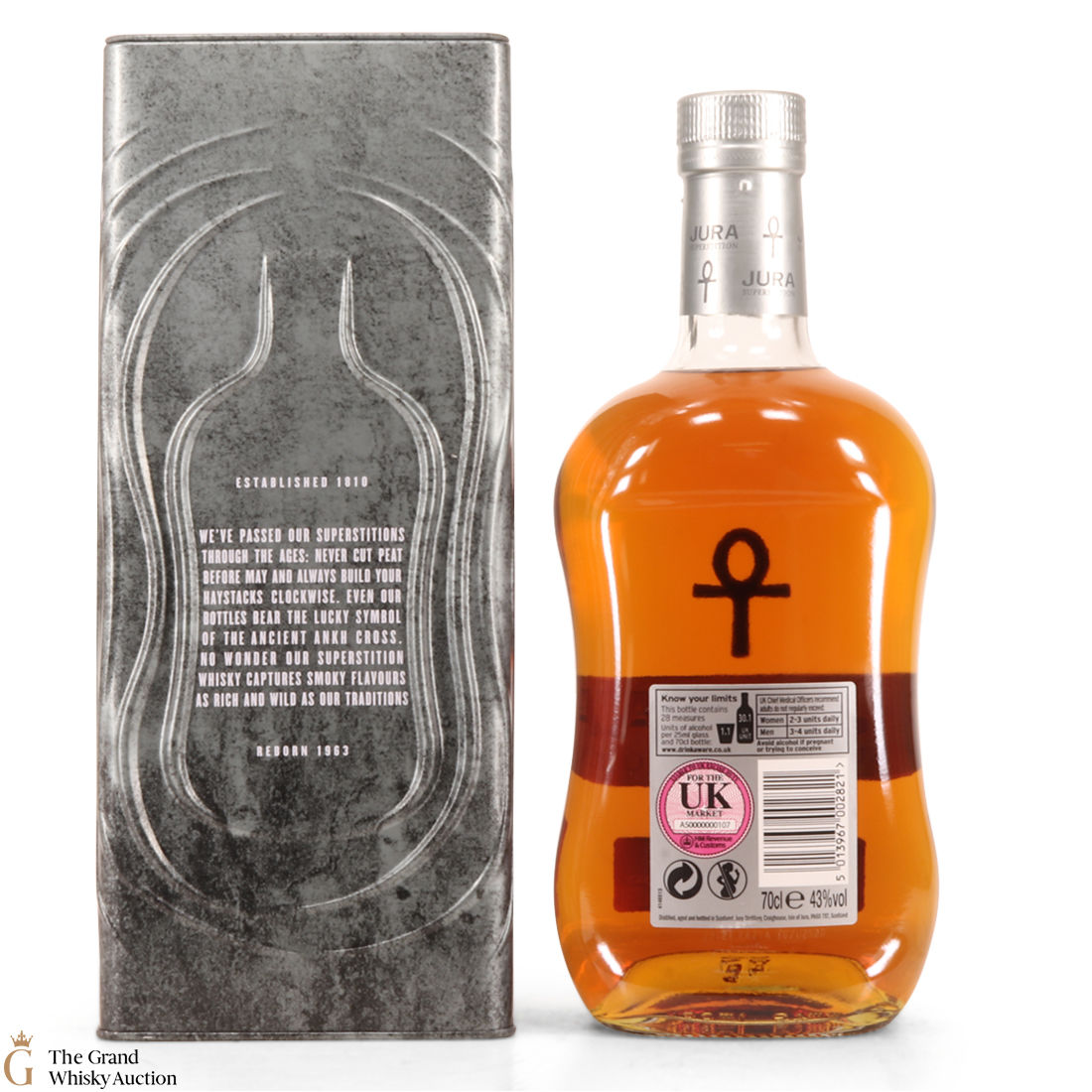 This is the relatively more heavily peated version of the single malt, made up of different ages. It is named after the fact that Islanders were very superstitious in the past, this is a nod to them, and to the Island of Jura which is still dotted with ancient stones and markings. When you raise a glass of this whisky, you're raising a glass to the ancient ways of the island.