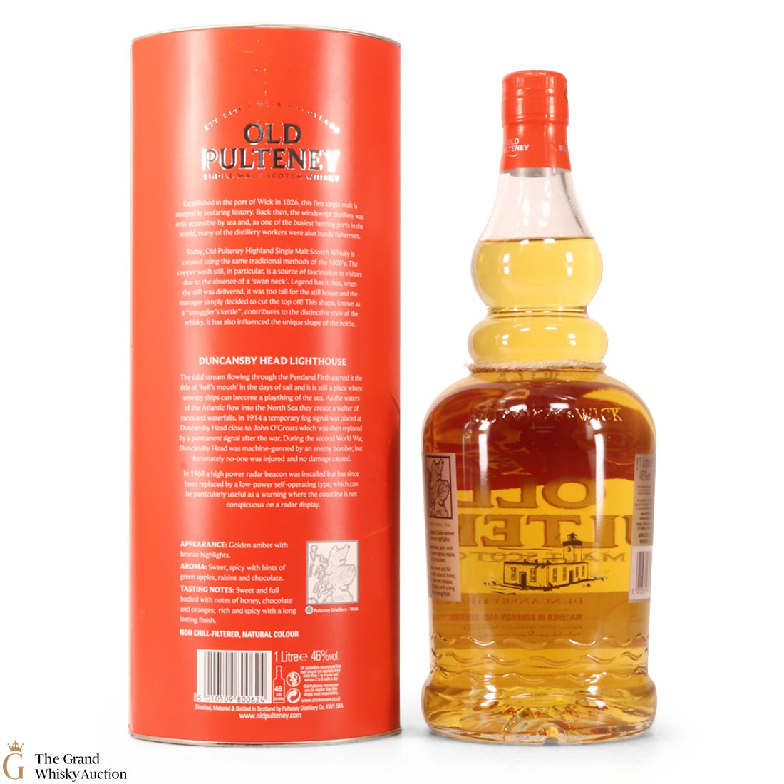 Named after Duncansby Head lighthouse, this travel retail Old Pulteney single malt Scotch whisky is matured in a combination of American ex-bourbon and Spanish ex-Sherry casks.