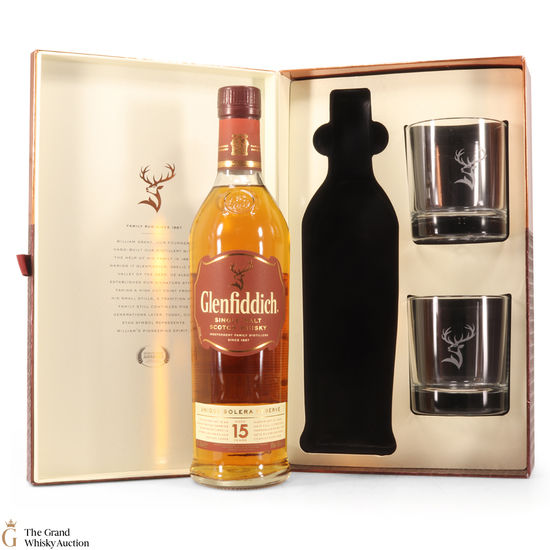 This gift set includes 2 x branded glasses and 1 x Glenfiddich - 15-Year-Old - Solera Reserve 70cl.