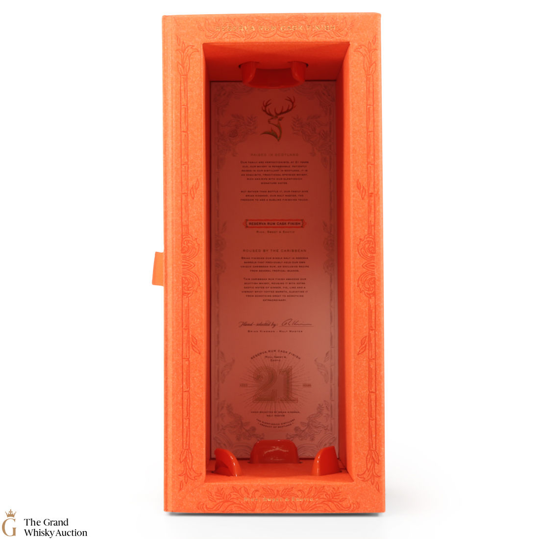 The Glenfiddich Gran Reserva has matured and mellowed in American Oak Casks for 21 years before been finished in previously used Caribbean Rum casks for 4 months.