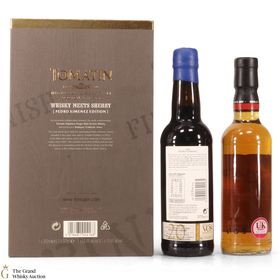 A collaboration between Tomatin Highland Single Malt Scotch Whisky and Bodegas Tradicion Jerez. The casks which once held the outstanding Oloroso and Pedro Ximenez Sherries were sent to Tomatin Distillery in 2012, to be filled with whisky which had been maturing in Hogshead casks since 2000. The contents were bottled and we have the pleasure in presenting both the finished whisky and the final sherry in this limited edition of Whisky Meets Sherry.