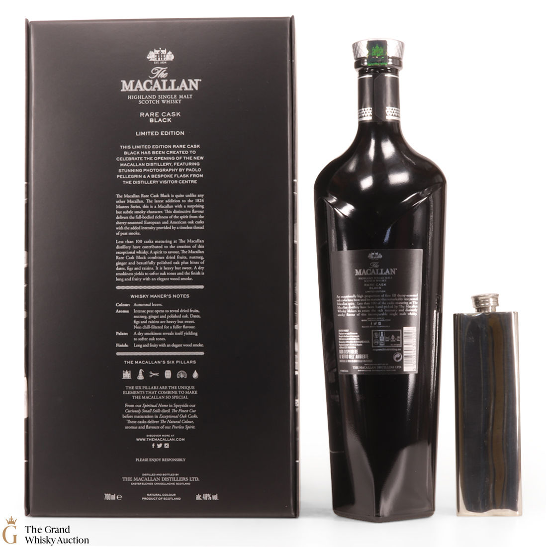 The Macallan Rare Cask Black Limited Edition was released to celebrate the opening of the new Macallan Distillery. It is part of the Macallan 1824 series and features stunning photography by Paolo Pellegrin and a bespoke flask from the Distillery Visitor Centre. The release was a limited edition of 7000 sets, which were only available at airports.