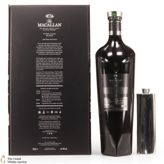 The Macallan Rare Cask Black Limited Edition was released to celebrate the opening of the new Macallan Distillery. It is part of the Macallan 1824 series and features stunning photography by Paolo Pellegrin and a bespoke flask from the Distillery Visitor Centre. The release was a limited edition of 7000 sets, which were only available at airports.
