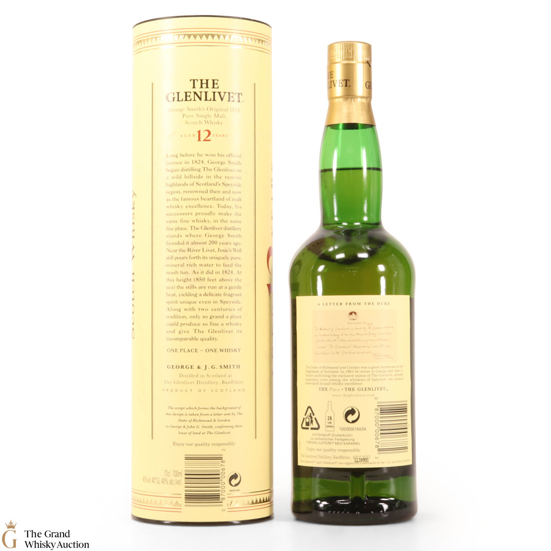 This is an older style bottling of the popular dram, known as 'The single malt that started it all' for Glenlivet. The Glenlivet 12 Year Old has a soft smooth balance of sweet summer fruits and the floral notes of spring flowers. This is a 1-litre bottling.