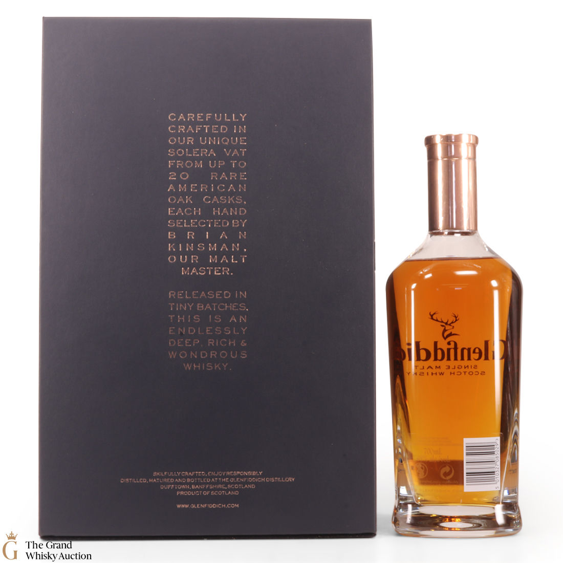 This bottling by Glenfiddich has been crafted in unique solera vat from up to 20 rare American oak casks, the casks had been carefully hand-selected by Brian Kinsman, Glenfiddich's own Malt Master. It has been released in tiny batches. It is said to be an endlessly deep, rich & wonderous whisky.