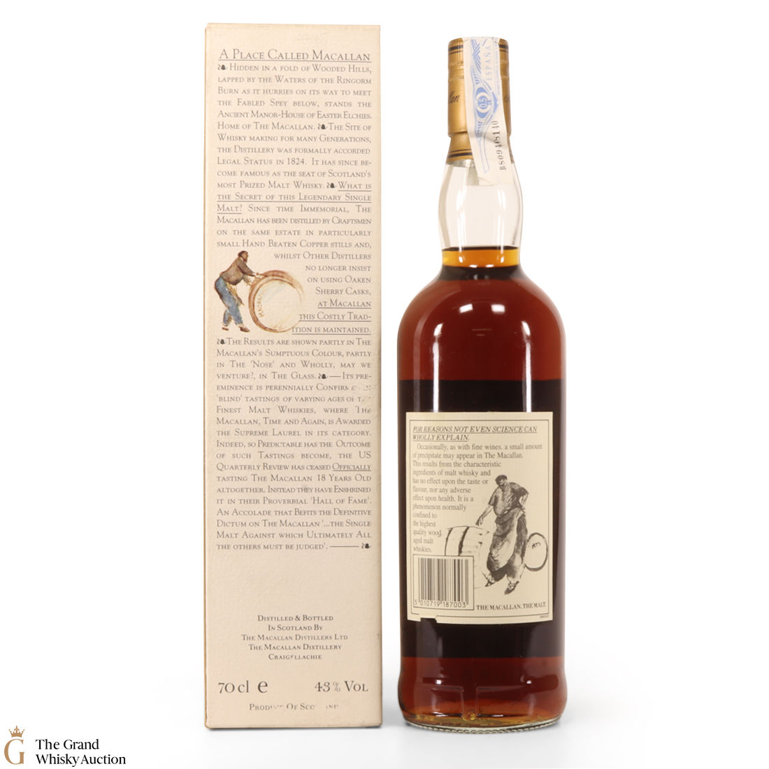 This vintage Macallan 18 Year Old is from 1979. The single malt has been matured for 18 years in Sherry Oak casks handpicked and made in Jerez, Spain.