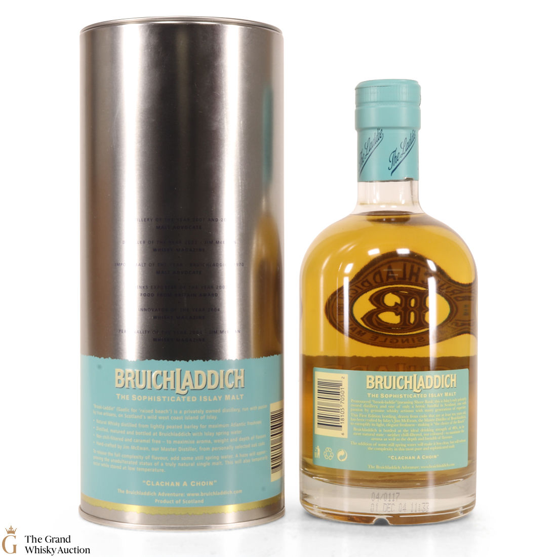 This 10-year-old Islay single malt from Bruichladdich comes complete with presentation tin tube. This edition is the old style and now discontinued packaging that has been replaced by the 'Laddie Ten'.