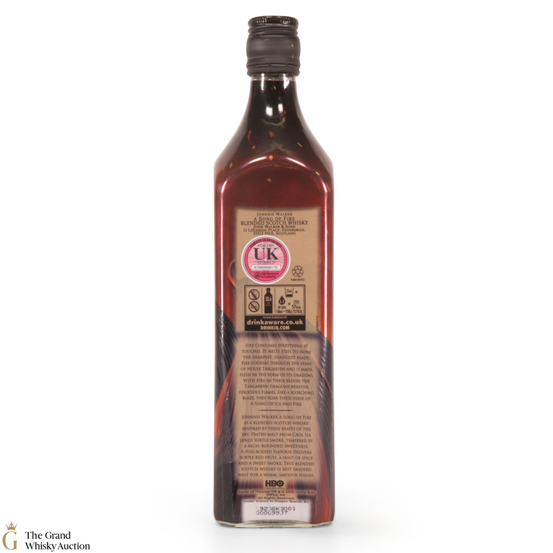 A limited-edition celebration and ode to Game of Thrones, Johnnie Walker A Song of Fire. The subtle notes of the smoke and peated malts from the Caol Ila distillery within the blend pay homage to the Dragons of House Targaryen.