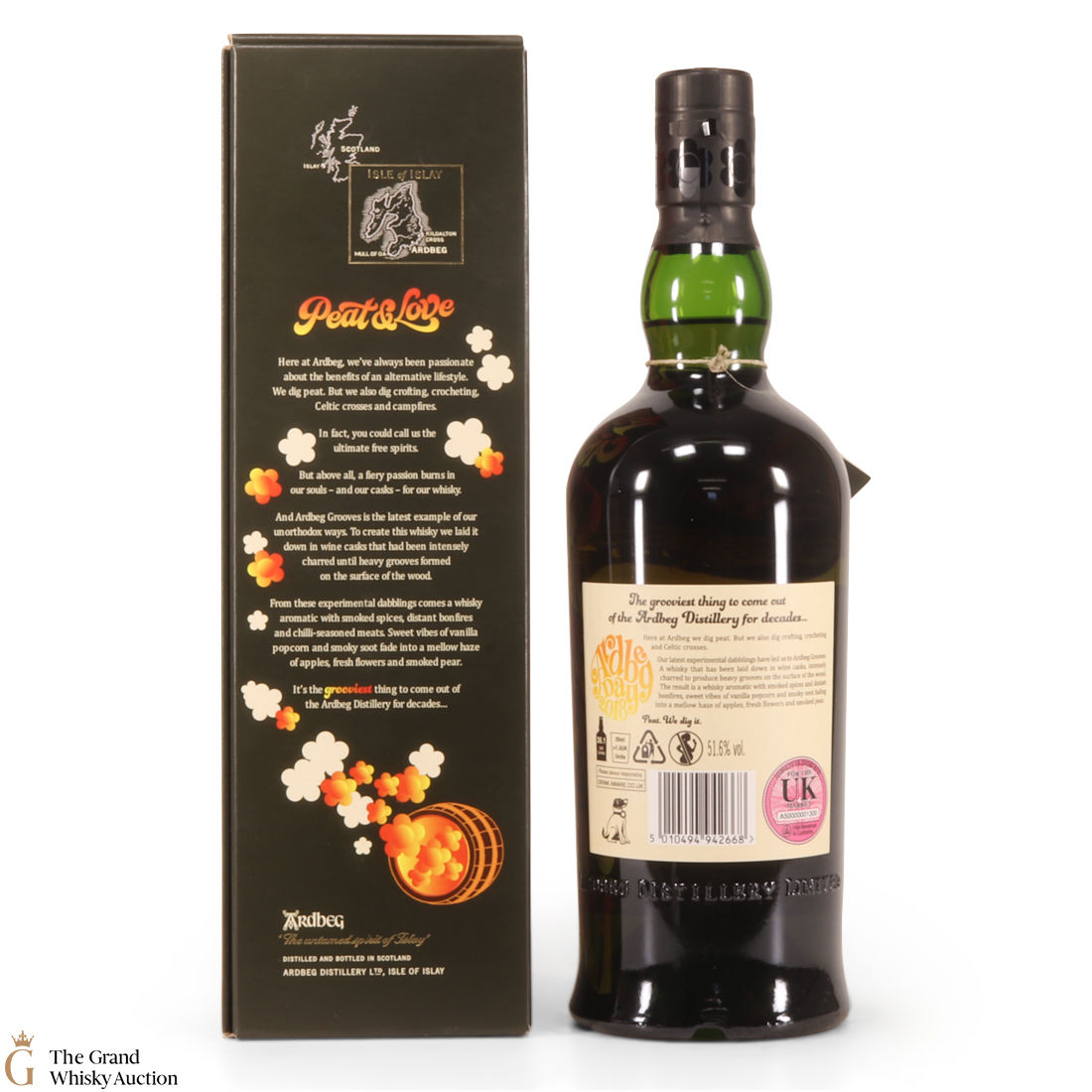 This limited edition Islay single malt was released to mark the 2018 Ardbeg Day at the Islay Festival of Music & Malt. The theme is a throwback to the Island's 1960s spirit, embodying the ideals of 'peat & love'! Ardbeg Grooves is crafted with ex-wine casks that are re-charred to create heavy grooves in the wood, allowing more interaction with the spirit and creating a richer flavour.