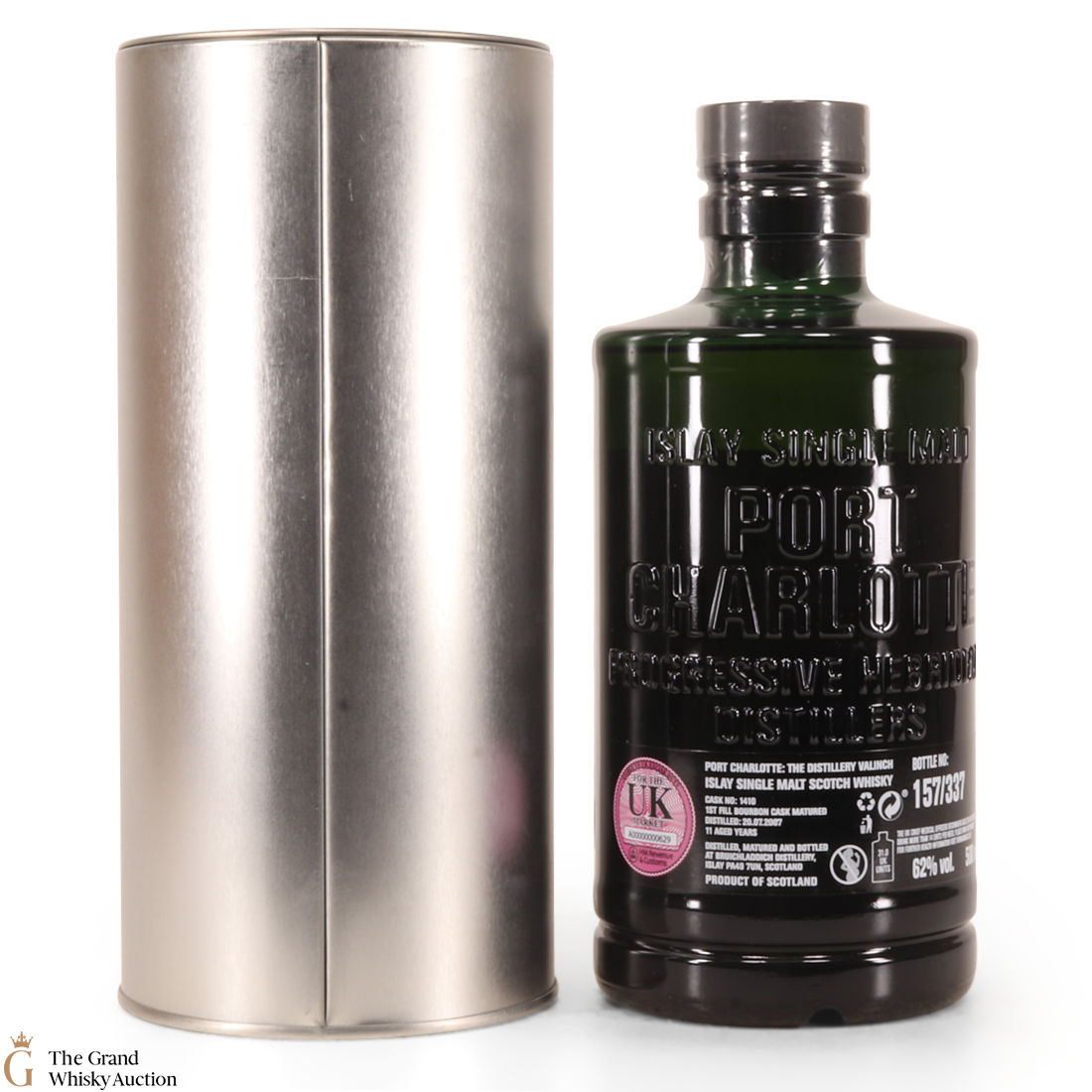 From Bruichladdich, this Port Charlotte Valinch single cask is an 11 year-old distilled in Islay in 2007, matured in 1st fill bourbon barrel #1410. This is a distillery exclusive release of 337 bottles at 62% ABV. This is a 50cl bottling.
