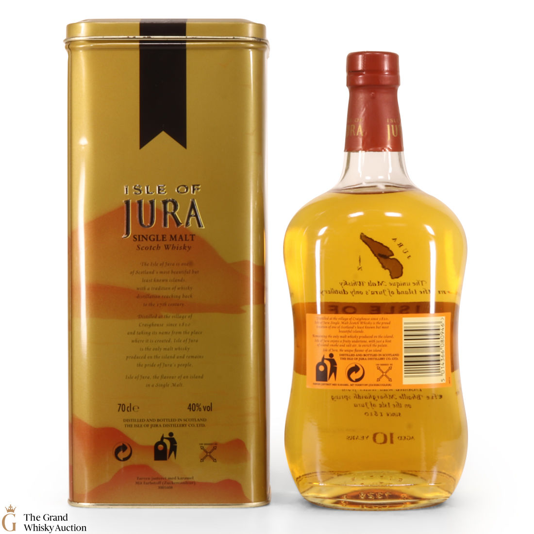 A bottle of Jura 10 Year Old. Originally built in 1810, the distillery fell into disrepair and wasn't revived until the 1960's by two local estate owners.
