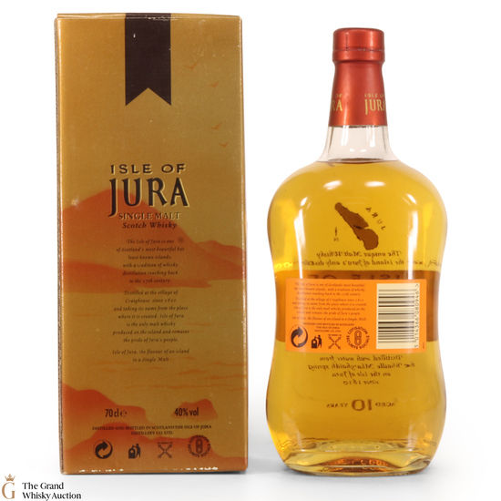 A bottle of Jura 10 Year Old. Originally built in 1810, the distillery fell into disrepair and wasn't revived until the 1960's by two local estate owners.