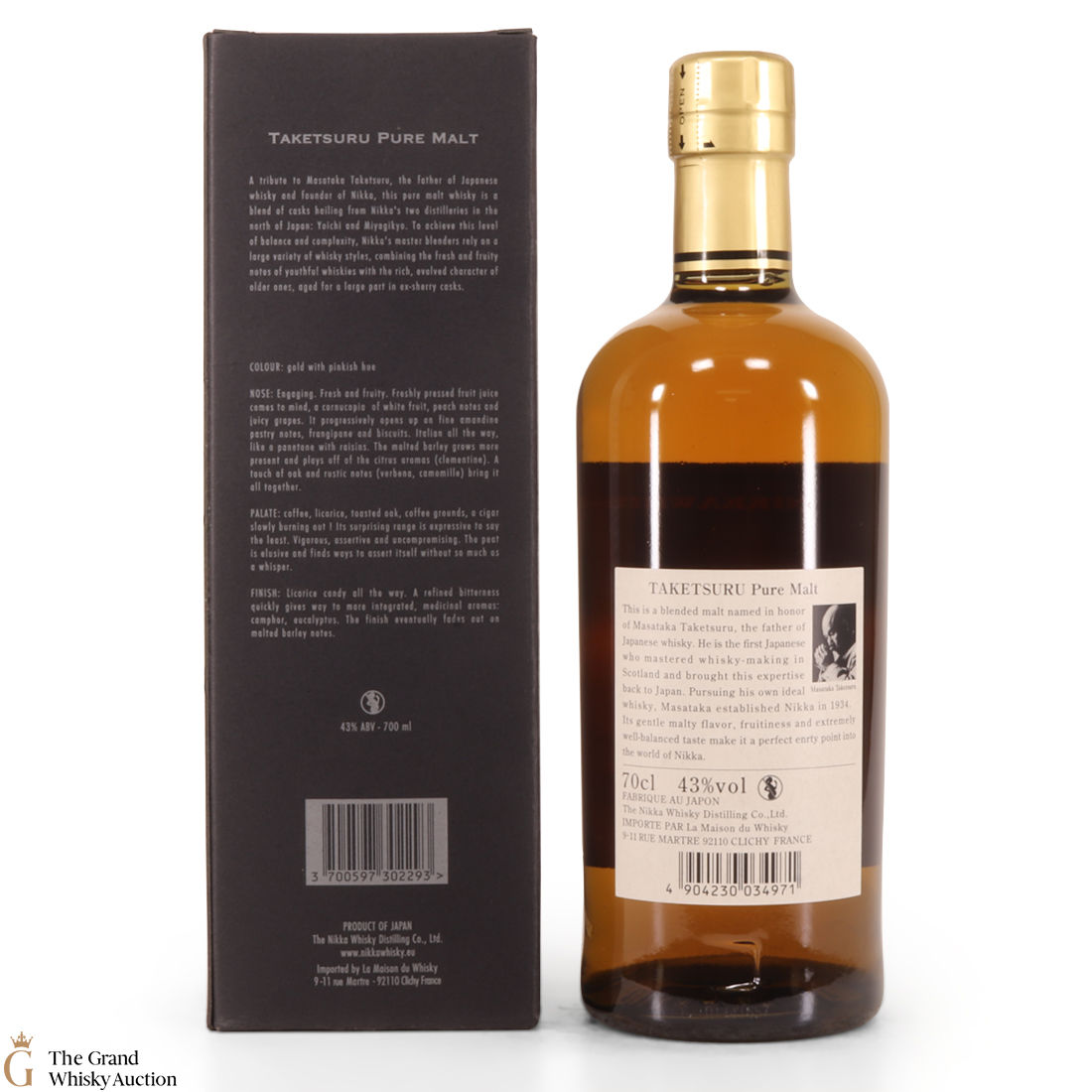 This is a non-age-statement expression of Nikka Taketsuru pure malt whisky, named after the company's founder, Masataka Taketsuru. It contains a blend consisting of a high percentage of malt from Miyagikyo distillery, with the remainder coming from Yoichi, including some matured in sherry casks.