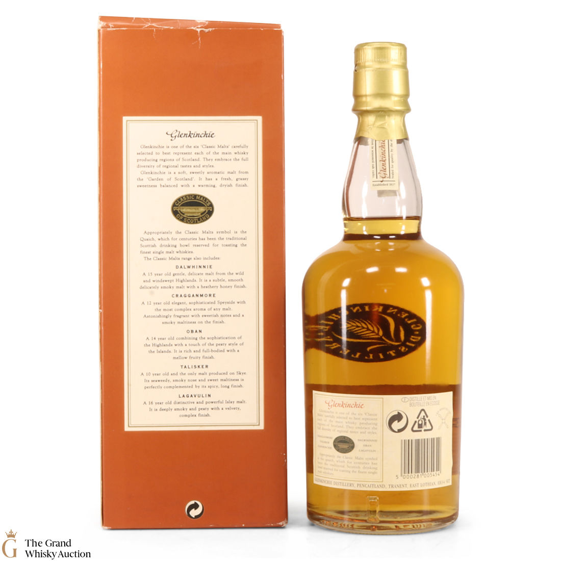 This 10 year old is an older style bottling from Glenkinchie Distillery, that comes presented in the famous orange box - with the classic malt stamp on the front of the box. The Glenkinchie 10 year old has since been replaced by the 12 year old.