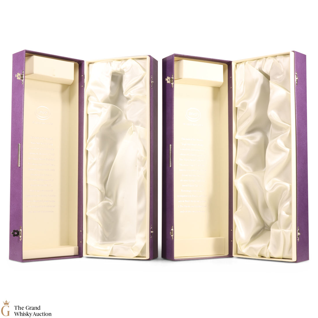 Due to the various ages of bottles and their seals, the condition of liquid is at the buyer's discretion and no claim can be lodged against failure/leakage in transit. Loss and breakage cover is available at 3% of the hammer price as standard. If the lot is not insured, no claim can be lodged against the courier or The Grand Whisky Auction for breakage or loss in transit.