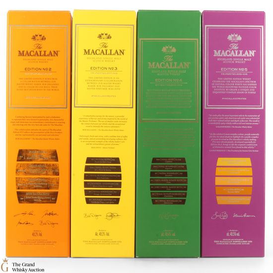 This lot brings together the Macallan Edition set to date (minus 1), comprising of Edition no.2, 3 ,4 and 5 in the annual limited edition series.