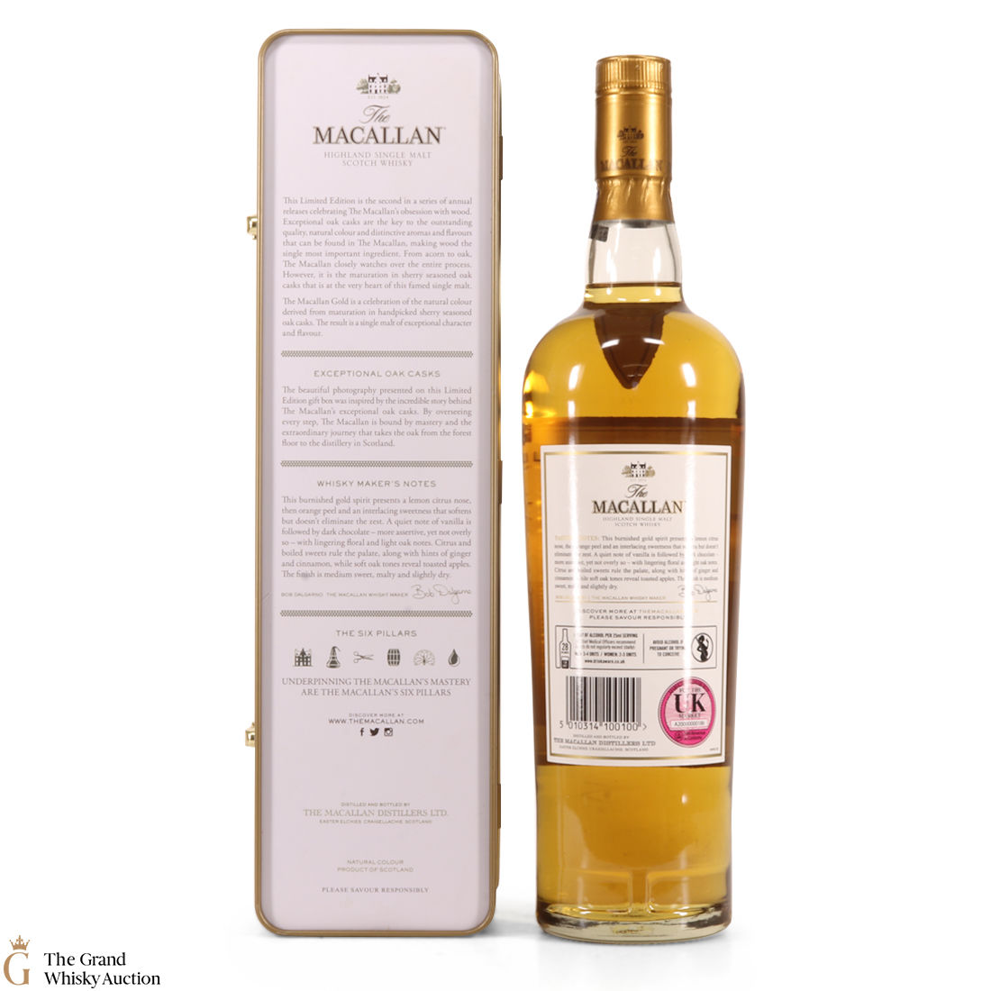 Macallan Gold was released in late 2012 as part of a series of colour-themed bottlings introduced to replace the distillery's age-statement expressions. Produced from 9-15yo first fill and refill sherry casks, it was designed to sit between the now-defunct 10yo Sherry Oak and 10yo Fine Oak bottlings.