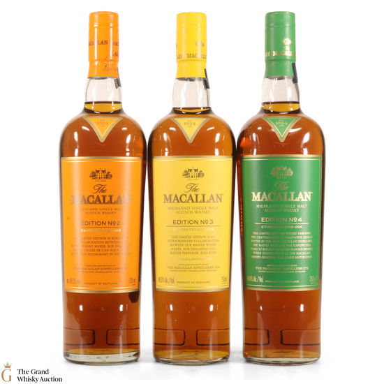 This lot brings together the Macallan Edition set to date (minus 2), comprising of Edition no.2, 3 and 4 in the annual limited edition series.