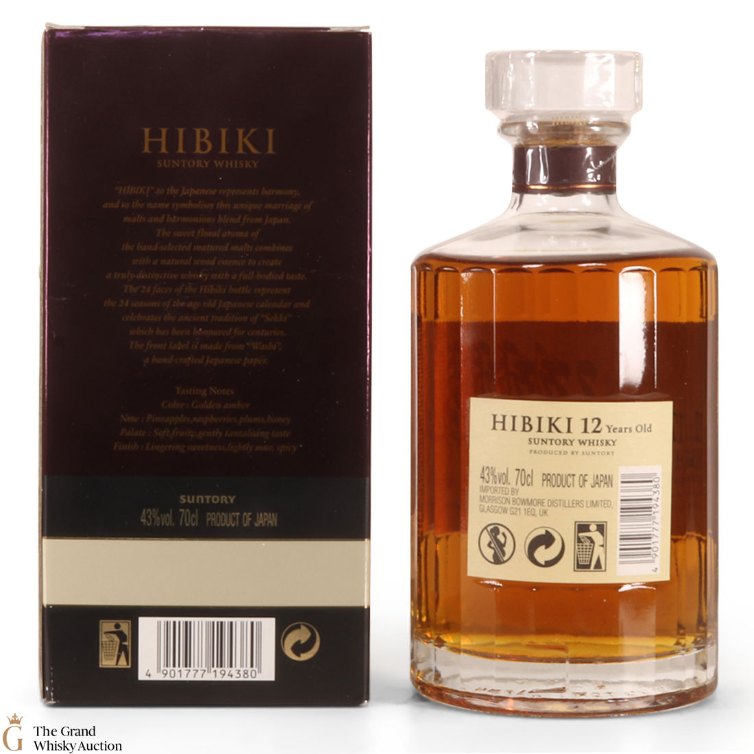 This now-discontinued Hibiki 12 year old is a superb blended Japanese whisky meaning it has become a very popular, rare and collectable bottling. Hibiki includes malt whisky from Yamazaki and Hakushu, as well as grain whisky from Chita. The whisky is partly matured in plum liqueur barrels. Unfortunately, Hibiki 12 was discontinued by Suntory in 2015.