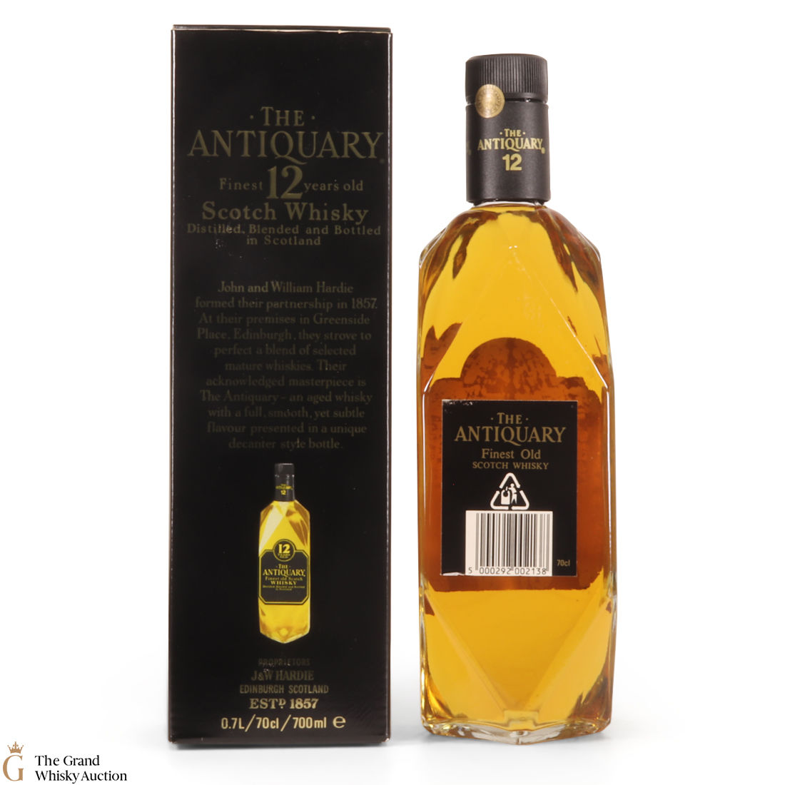 This bottling from Antiquary is a blend of some of Scotland's greatest 12-year-old malt and grain whiskies, including Royal Lochnagar, Tomatin, Cragganmore, Mortlach, Bowmore, Glenkinchie to name a few. Also, a quirky feature is that In the lid of this bottle box, there is a coaster that pops out!
