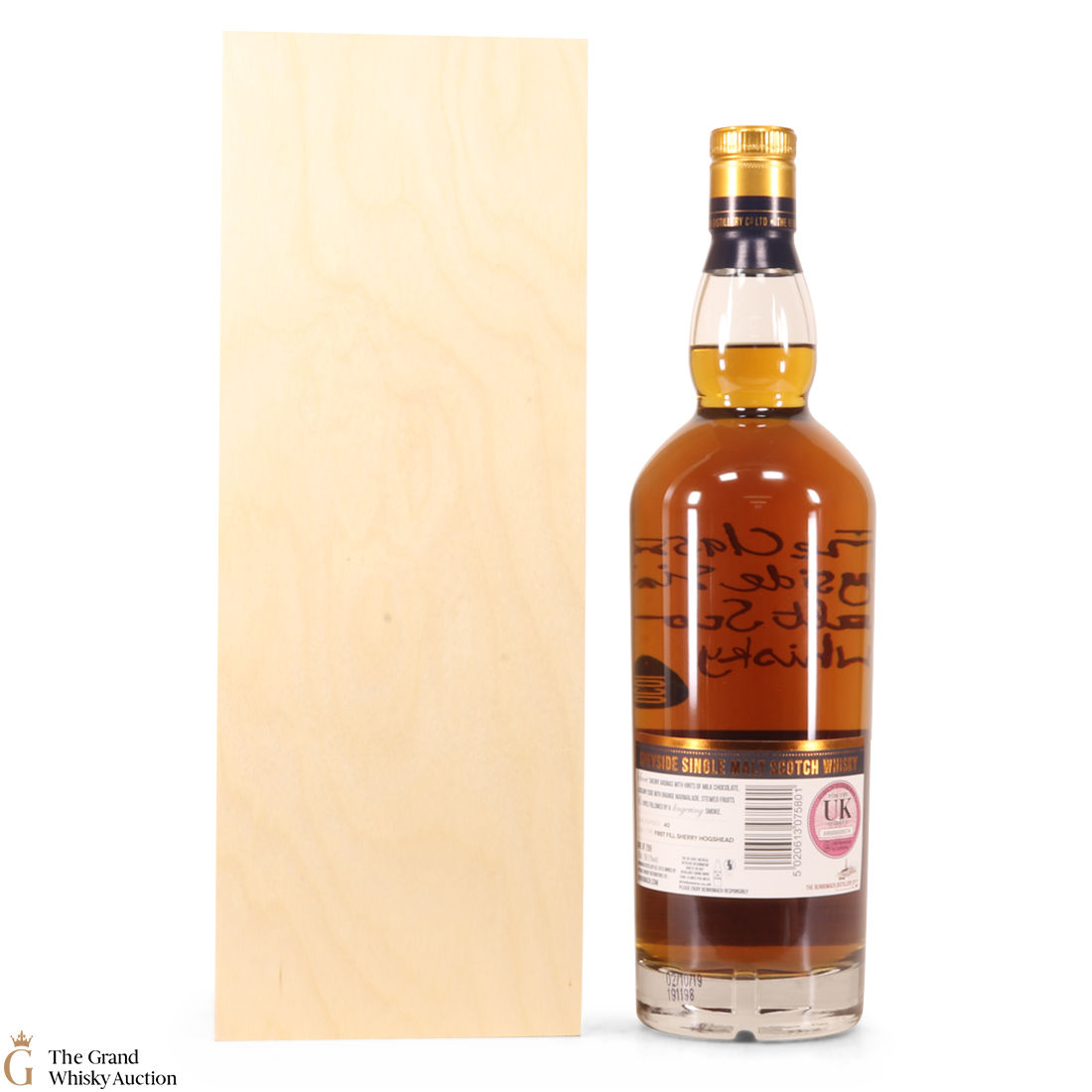 Due to the various ages of bottles and their seals, the condition of liquid is at the buyer's discretion and no claim can be lodged against failure/leakage in transit. Loss and breakage cover is available at 3% of the hammer price as standard. If the lot is not insured, no claim can be lodged against the courier or The Grand Whisky Auction for breakage or loss in transit.