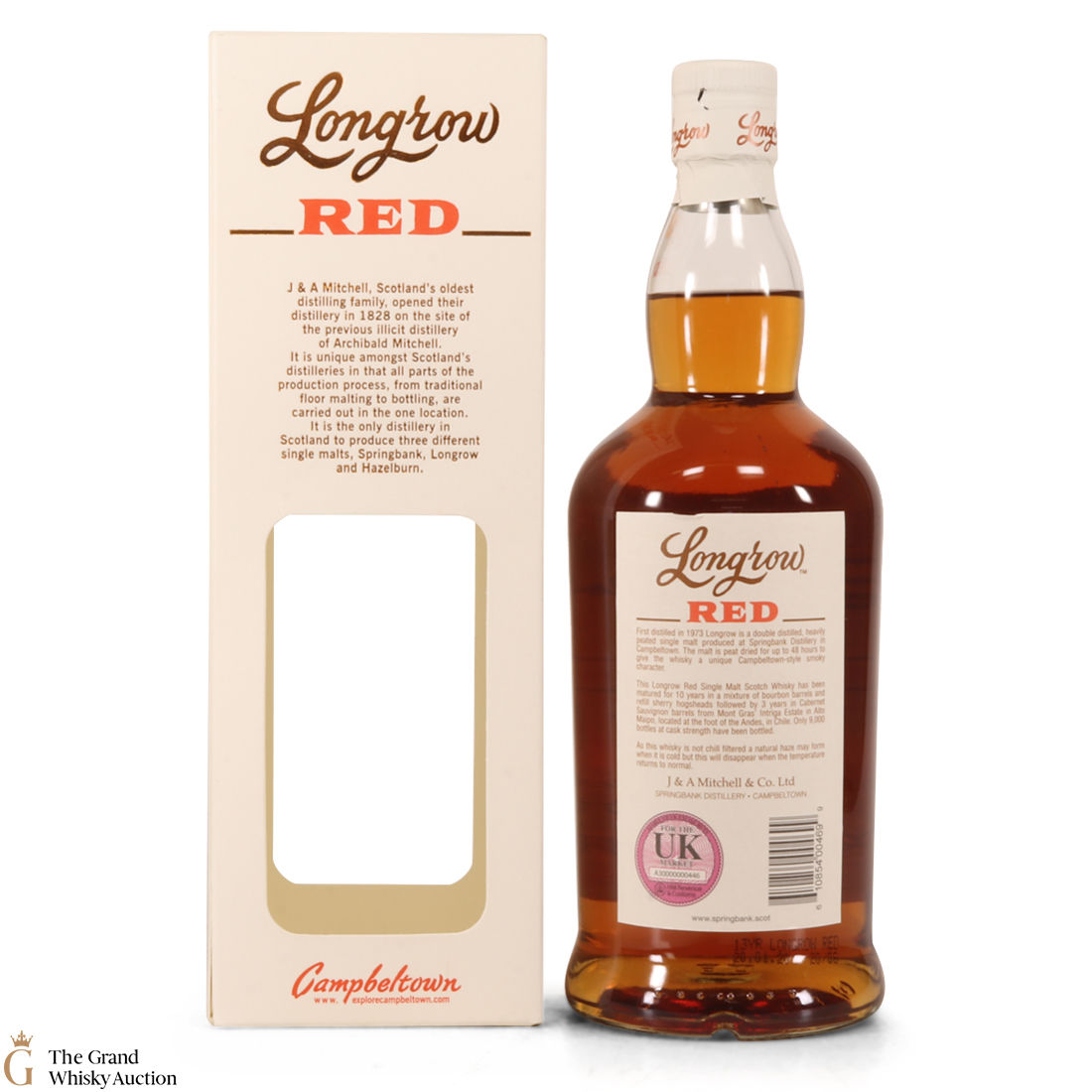 This 13-year-old Longrow Red, is a limited edition from Springbank Distillery in Campbeltown. This was matured for 10 years in a mixture of bourbon barrels and refill sherry hogshead followed by 3 years in Chilean Cabernet Sauvignon barrels. There is only 9000 bottles of this Longrow Red cask strength.