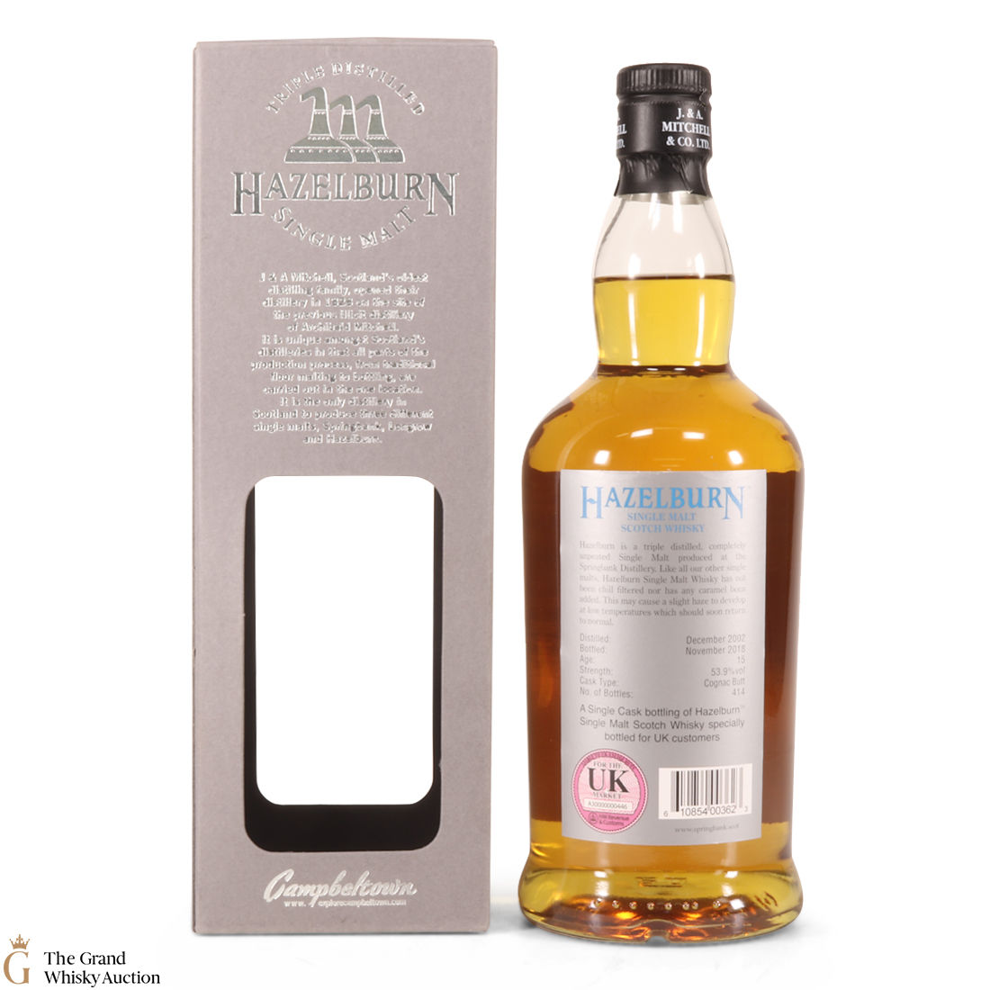 This 2002 vintage Hazelburn was matured for 15 years in a cognac butt and was bottled in 2018 exclusively for the UK. This is one of 414 bottles.
