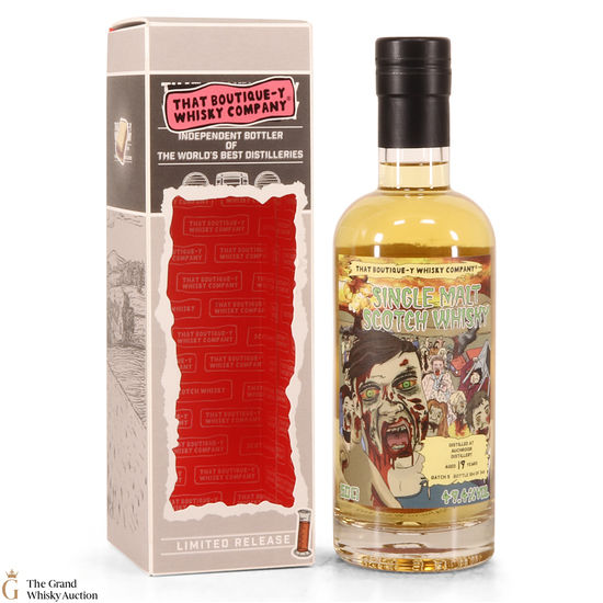 Released in December 2018, this 19 Year Old Auchroisk single malt was bottled by That Boutique-y Whisky Company. The Auchroisk distillery was built in 1974 by the folks from Justerini & Brooks and a large proportion of the malt goes into producing blends so single malts are harder to get your hands on. This is one of just 346 bottles produced in Batch 5. The label features a zombie apocalypse too.