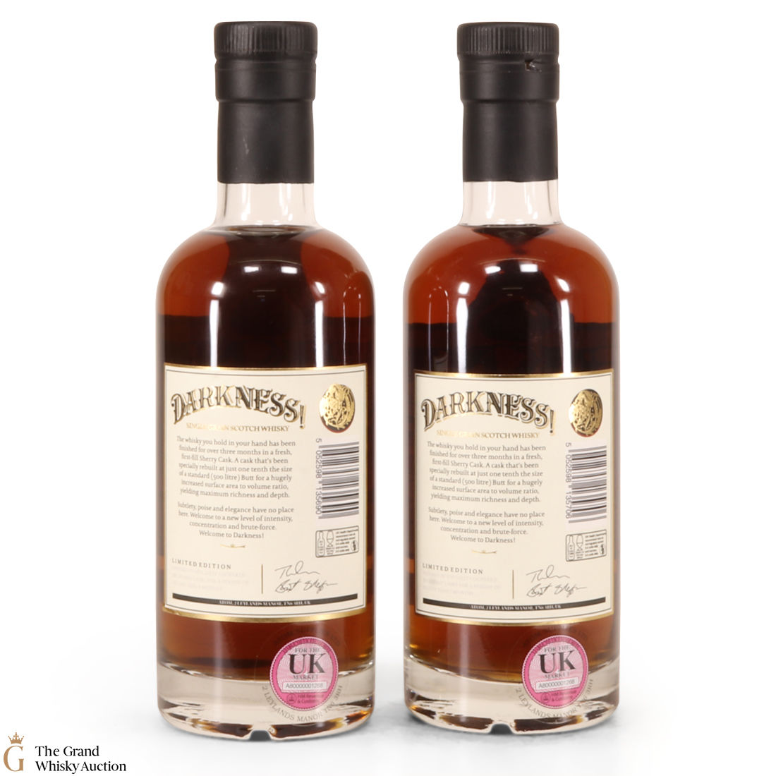 This lot includes 2 x 50cl Invergordon Single Grain whisky bottlings, independently bottled for the Darkness! range.