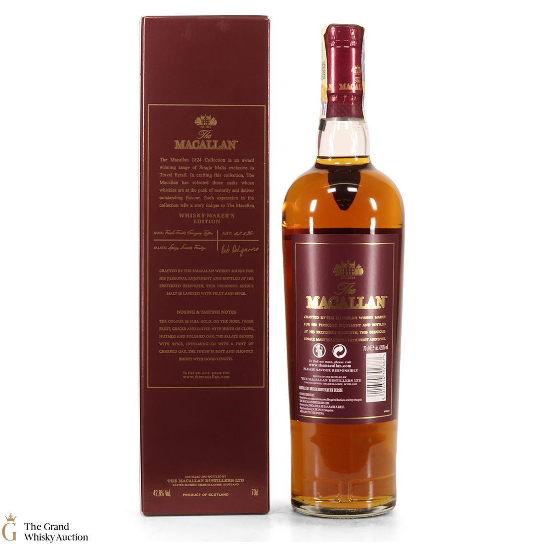 Released for the travel retail market, this single malt is part of The Macallan Whisky Maker's Edition Classic Travel Range. It was crafted by Bob Dalgarno, Macallan's distillery manager, using whisky drawn from a combination of Sherry and bourbon casks. It is bottled at his preferred strength of 42.8%.