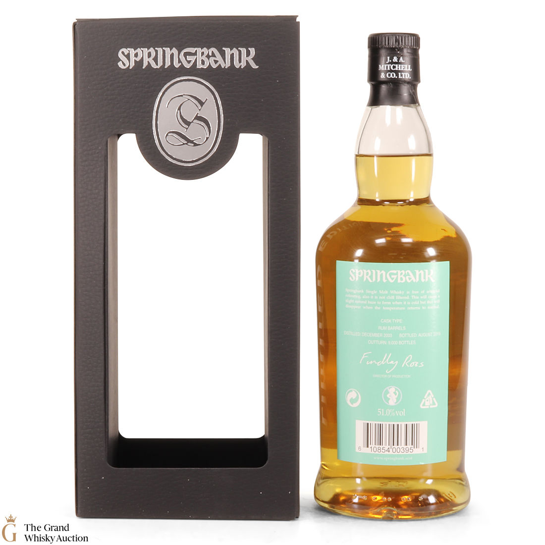 This is a limited edition, single malt Scotch whisky from Springbank distillery bottled and released in 2019. The whisky was fully matured in rum casks for 15 years. Bottled at a cask strength of 51.0% this is one of only 9,000 bottles released worldwide.