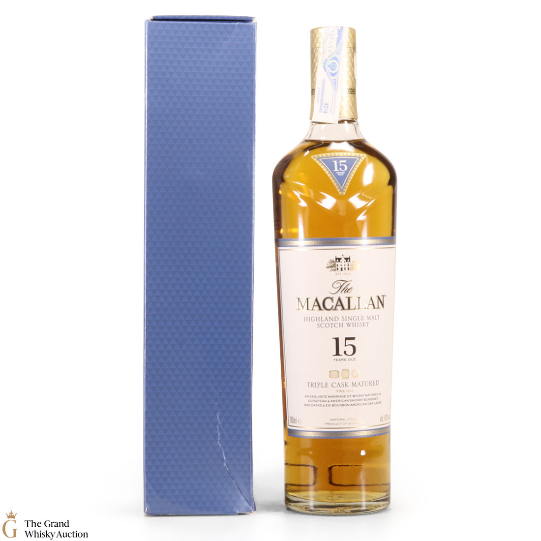 This 15-year-old Macallan single malt was is part of the Triple Cask range (which was brought out to replace the Fine Oak range in 2018). This whisky has been matured for 15 years in a combination of European sherry seasoned casks, American sherry seasoned casks and American ex-bourbon casks.
