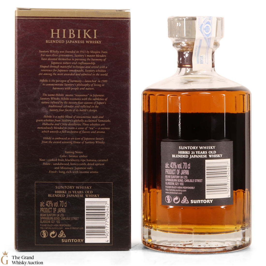 Hibiki 21 Year Old is a very popular blended whisky from Suntory. It is made up of a blend of specially selected mature malt and grain whiskies aged over 21 years. The key Yamazaki sherry casked malt is vatted with other carefully chosen mellow unblended grain whiskies over 21 years old.